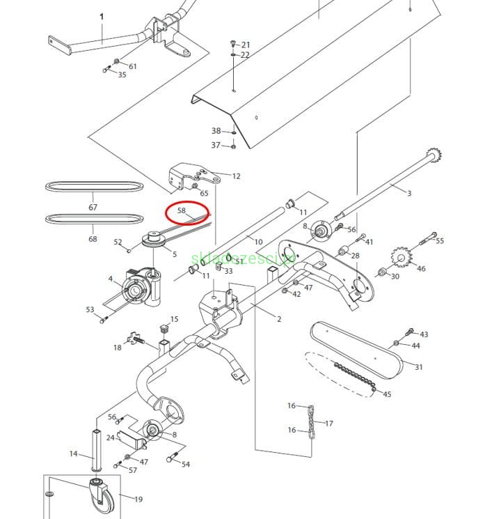 Pasek napędu jazdy - wałek pośredni - zespół tnący / deck / kosisko