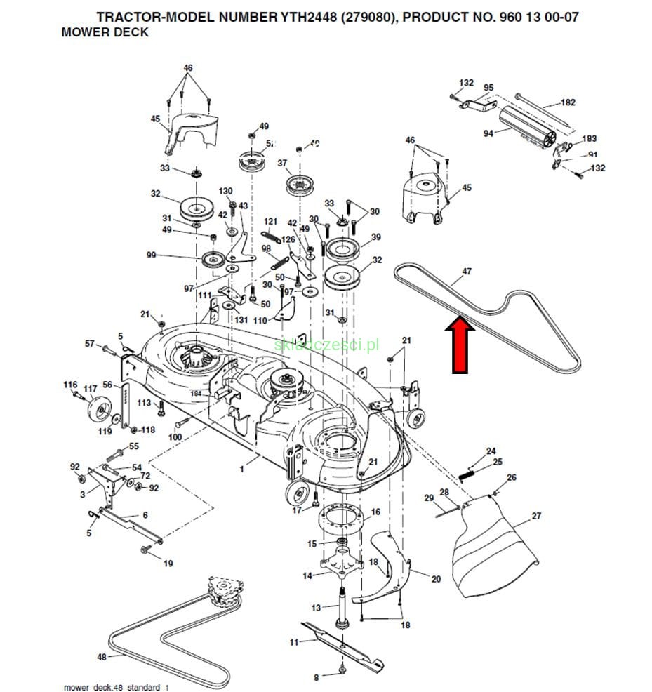 Drugi pasek napędu noży, nr 48 na rysunku :