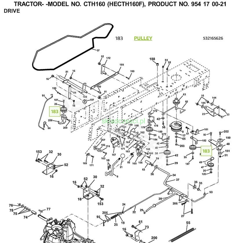 Najpopularniejszy pasek napędu jazdy, który współpracuje z rolką 532165626, w układzie napędu jazdy traktorka - kosiarki: